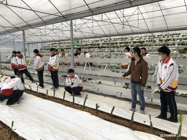 农业专家带领同学们进入基地温室大棚区域,介绍了温室大棚的结构、设计和管理方式,包括温度、湿度、光照等环境因素的调节和控制,介绍阳光玫瑰葡萄、火龙果、茄子、辣椒等果蔬作物的生长习性和生长环境需求,以及如何根据不同的生长阶段和环境条件调整管理措施,保证作物的正常生长。